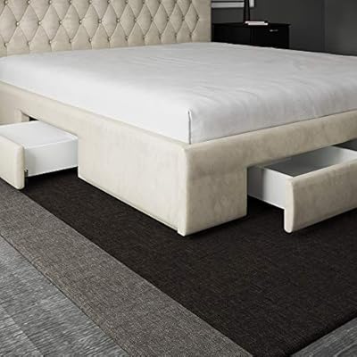 It can accommodate a large mattress and allows you to roll on comfortably without the fear of 5. Each large roll out drawer (38w x 5.5h x 23d) offers plenty of storage space for your blankets. A rollout drawer providing storage for everything from extra bedding and pillows, to seasonal clothes, books, toys and. These are beds with drawers or sliders that provide additional storage to save space. Zinus shalini kingsize upholstered bed frame with headboard.