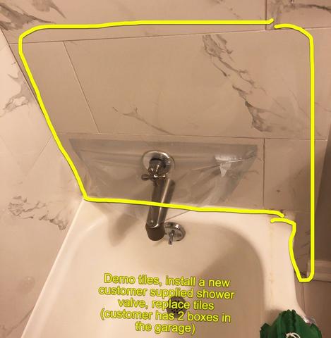 We have a shower that had a liquid barrier applied before marble tile, recently constructed. Remove 2 handle tub/shower valve replaced with new symmons tub/shower valve Measure in from the back wall to the center of the shower valve on the plumbing wall. For cxc, copper pipes leading from the homes water supply system are sweated into the valve. Position your tile on the wall.